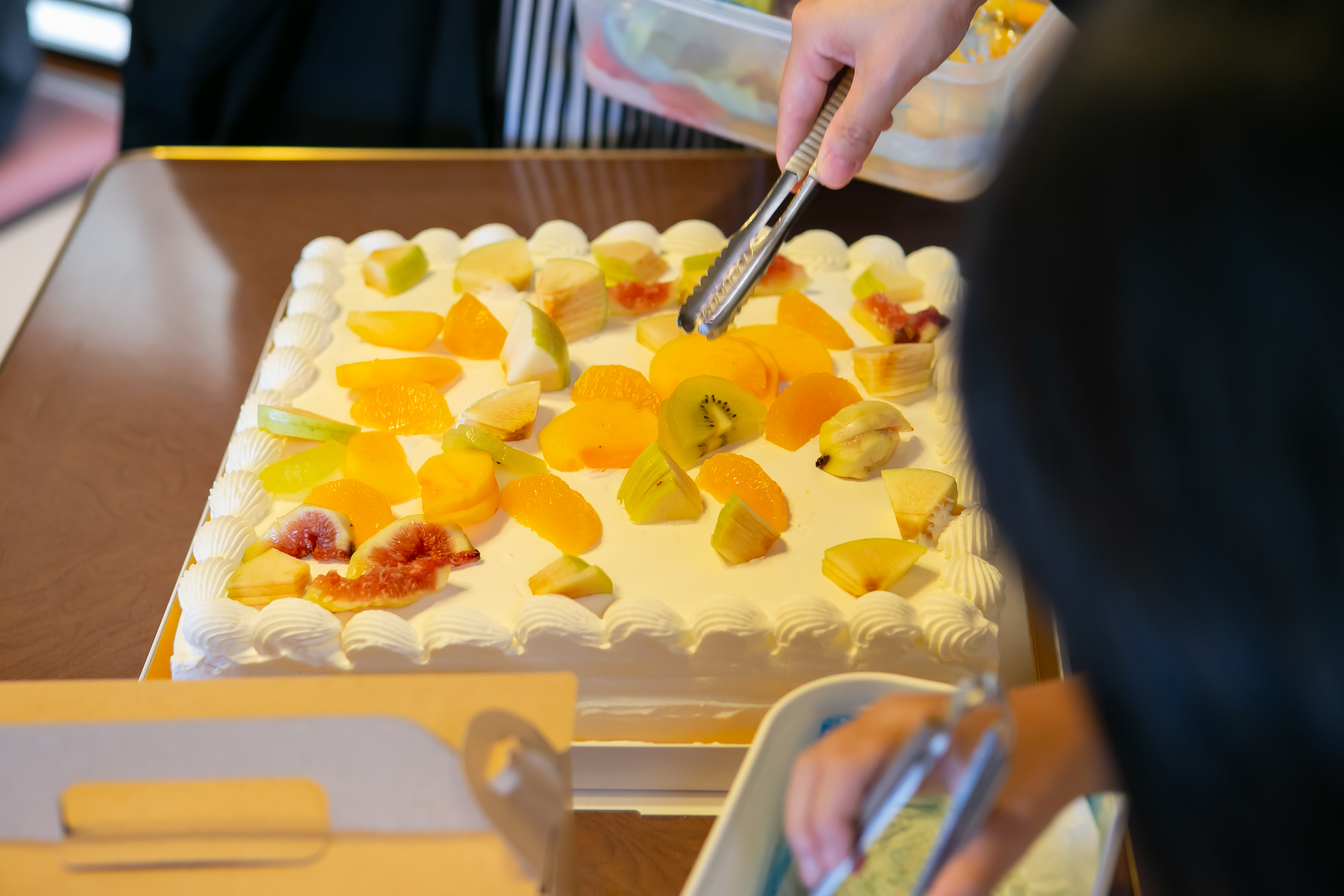 可愛いゲスト様とご一緒に飾りつけをされたウェディングケーキはとてもきれいに飾りつけられていて大成功でしたね。