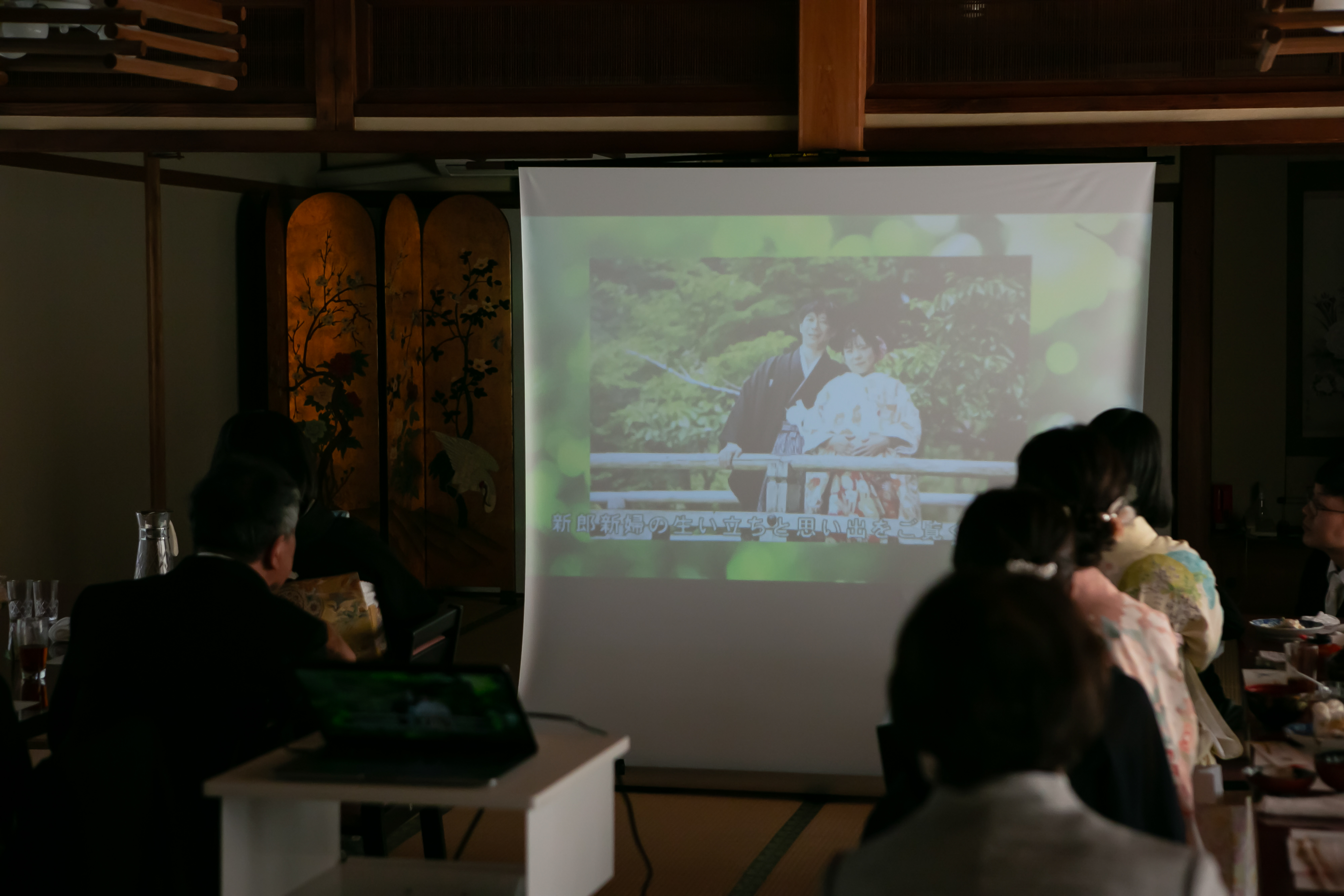 親族の皆さんが大正楼さんのお料理に大変満足されてました。当日はもちろんですが、打ち合わせや前撮りで谷口さんをはじめ、スタッフさんのお心遣いに感謝しております。ただ、会食のプロフィールムービーで遮光が不十分だったので、スライドが見にくかったと思います。旅館なので、カーテンを変えることは難しいと思うので手前に衝立を立てる等してもらえたらムービーが良く見えたのではないかと思います。