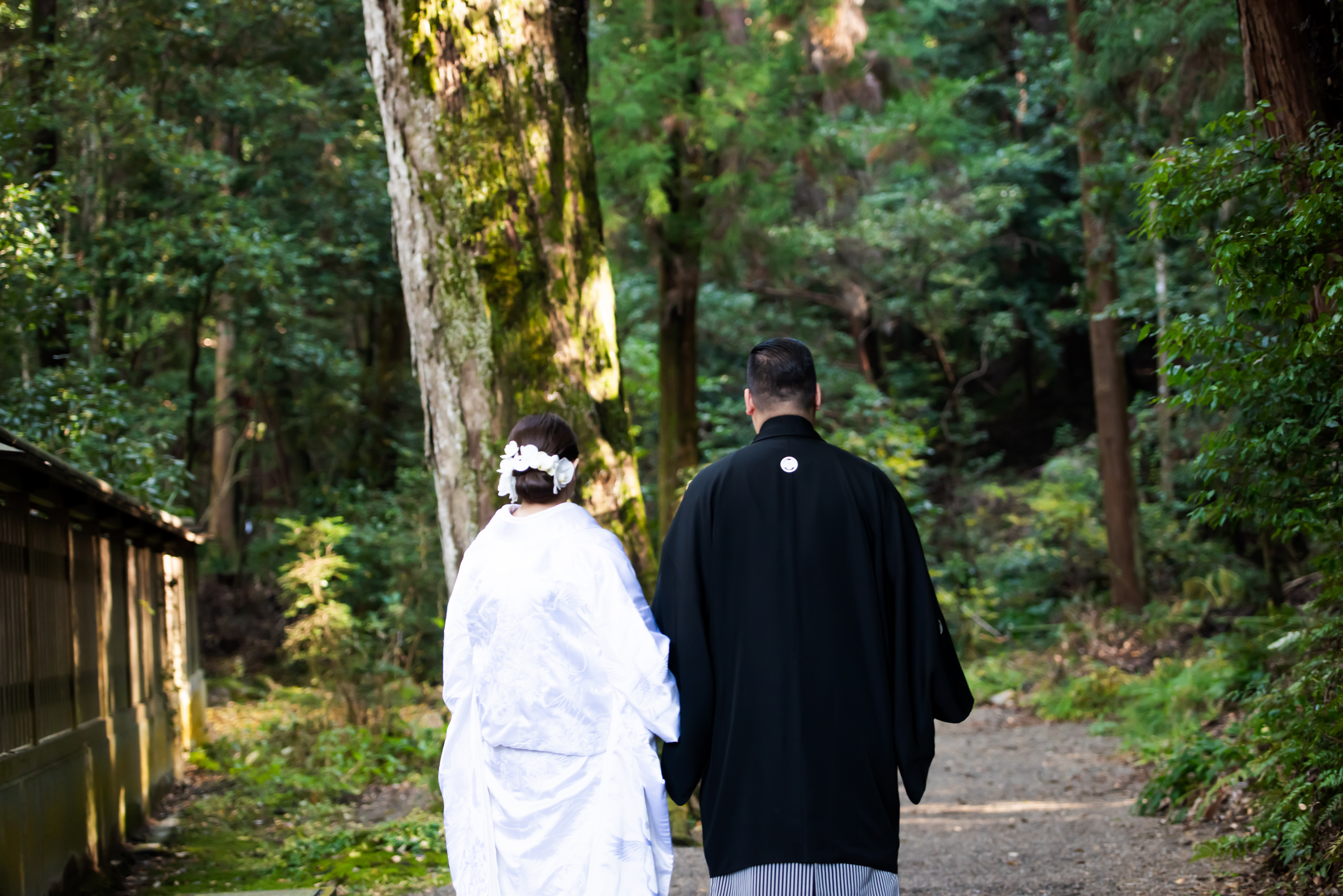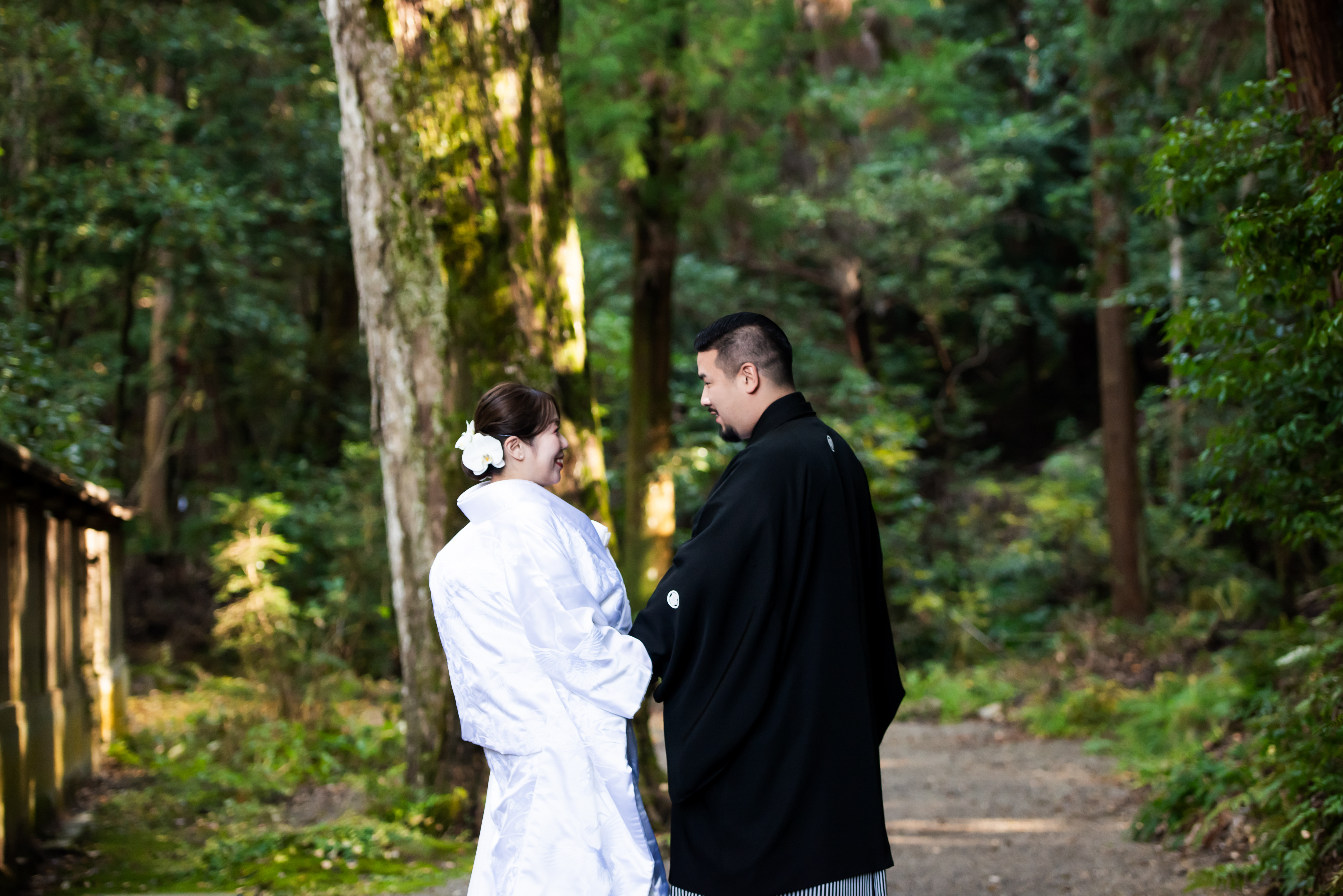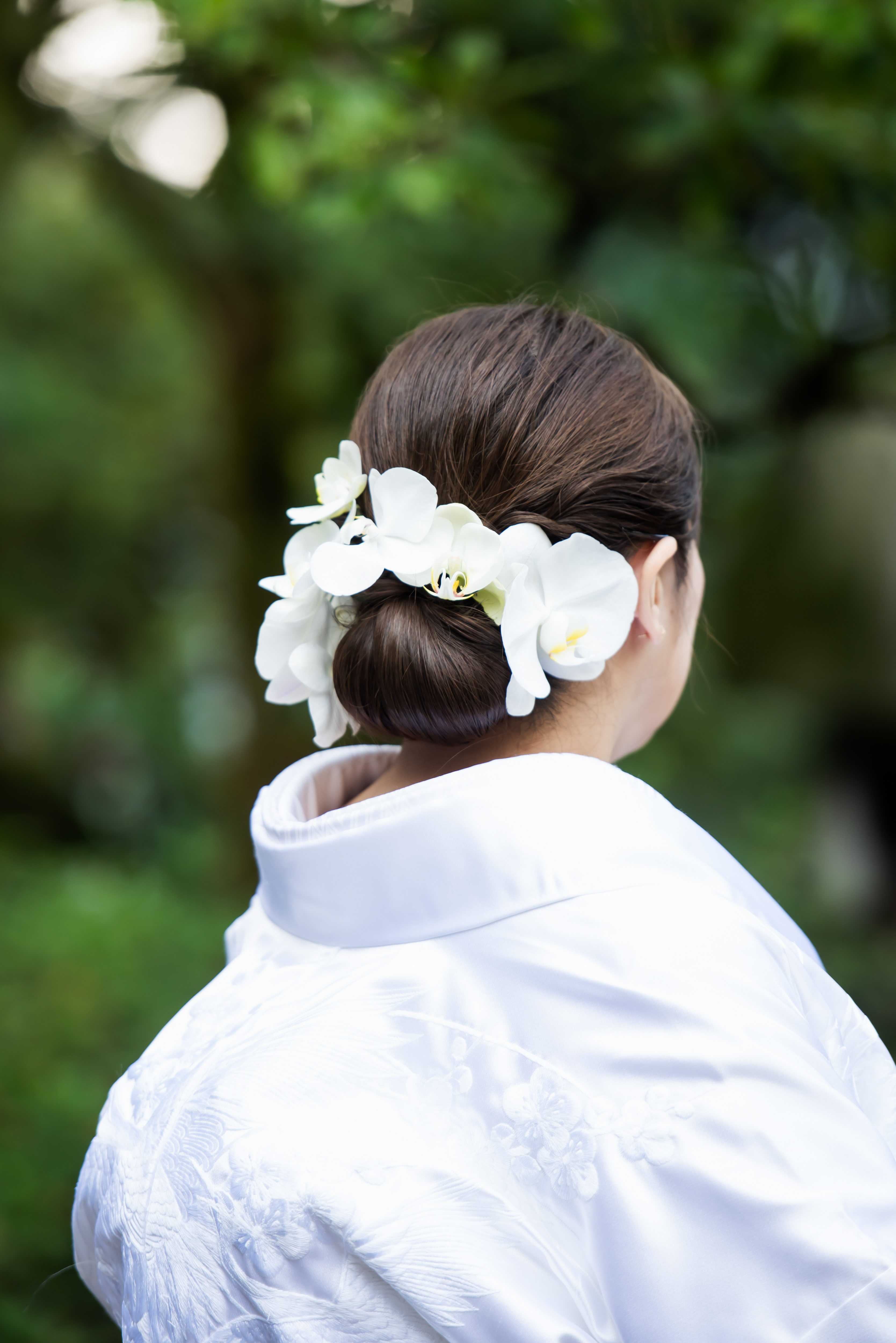 九州にお住いの新郎新婦様。挙式当日までの期間、一度だけ来店いただき衣裳とヘアメイクについてのご相談をさせていただきました。進行などその他の内容についてはリモート相談でご対応、奈良和婚では決して珍しくはないパターンですが、お二人にとってはご不安もおありだったのではと思います。